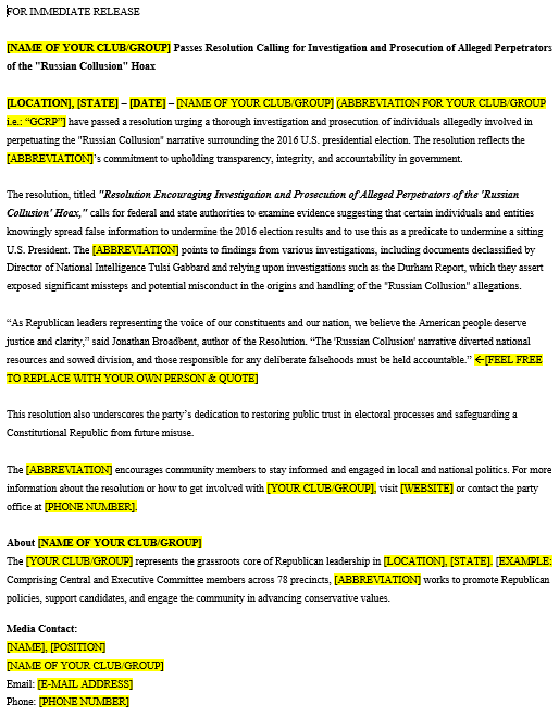 You’ll find this template available on the Precinct Strategy website under “Connect with Conservatives in the…” There,you’ll find a dedicated chat group to this resolution. You may also contact me directly or comment that you’d like an editable copy (this platform does not allow for document sharing).