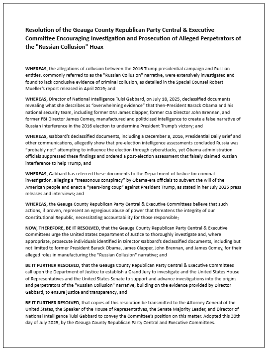 On July 30th, the Geauga Republican Party County Central & Executive Committees met and nearly unanimously passed the above resolution. Here’s what this means for you, and the Republic.