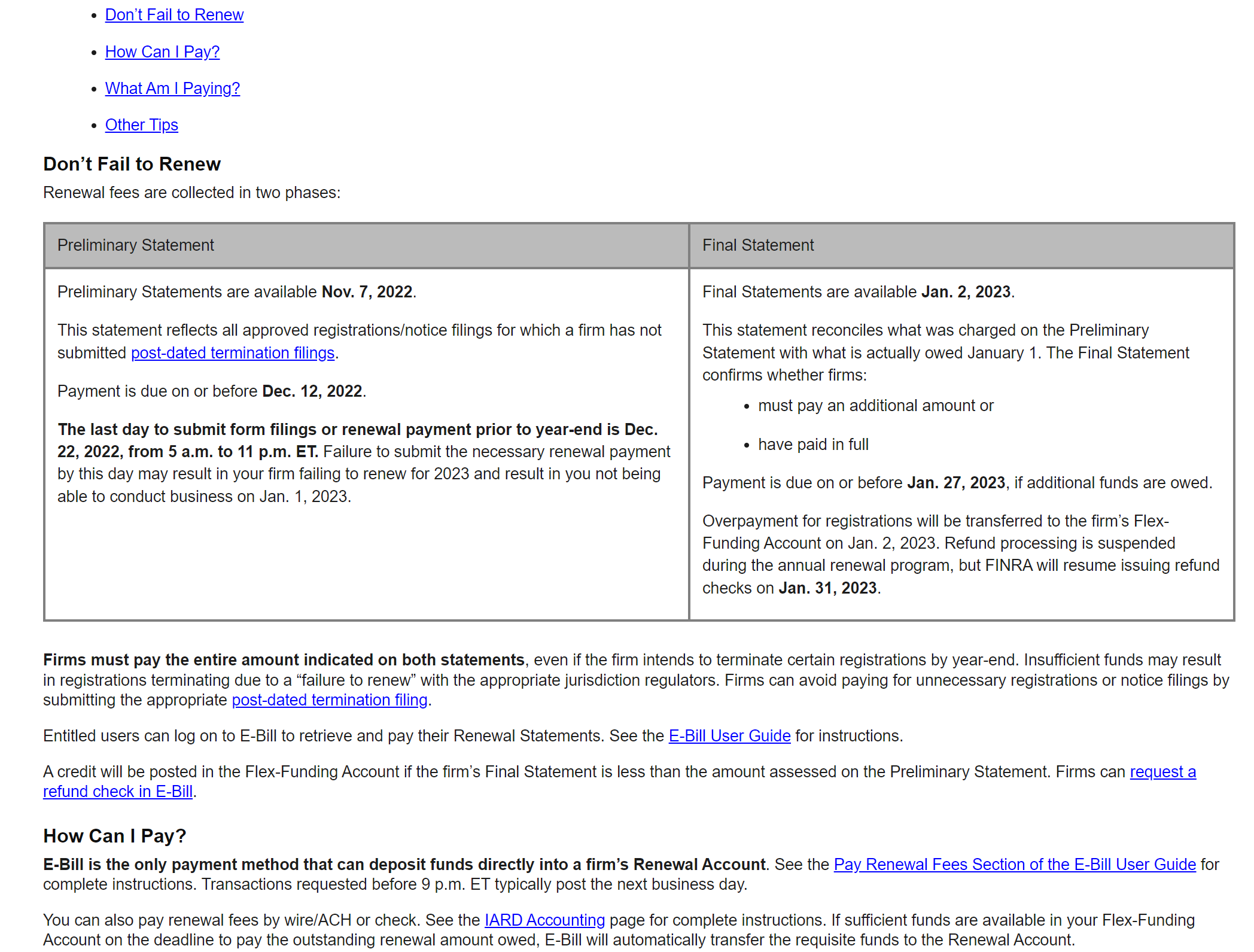 Regulators, it seems, calculate my renewal fees in November every year. Figuring out what’s owed and calculating the total is actually very difficult. So, all firms like mine over-estimate. All fees are collected by one firm and then distributed to everyone who collects fees in order for me to be permitted to do business in their jurisdiction. Different lines of business have different/additional fees; however, determining which lines of business apply to a small business like mine and in which instances, and which fees might be waived is extremely difficult.